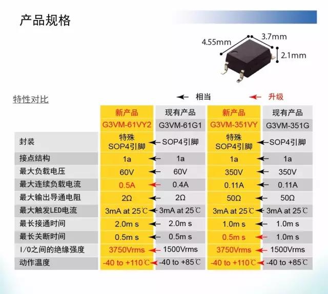 暢銷(xiāo)型號(hào)G3VM-61G1和G3VM-351G的升級(jí)版本。