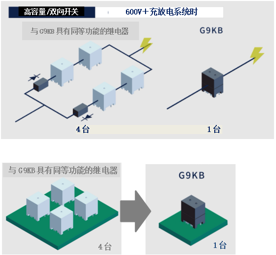 ● 在高電壓600V的系統(tǒng)上,可通過1臺繼電器實現(xiàn)充放電時直流電流的開關(guān)控制和安全阻斷。