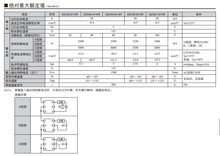 G3VM-31/61/101WR 光敏半導(dǎo)體MOS FET