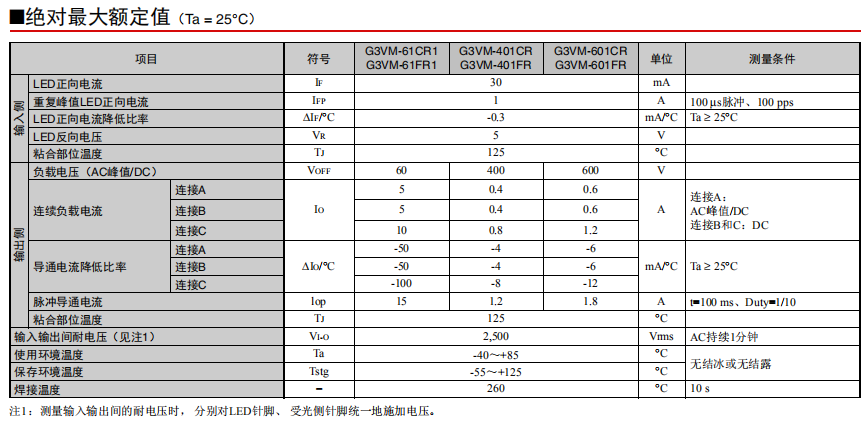 G3VM-31/61/101WR 光敏半導(dǎo)體MOS FET