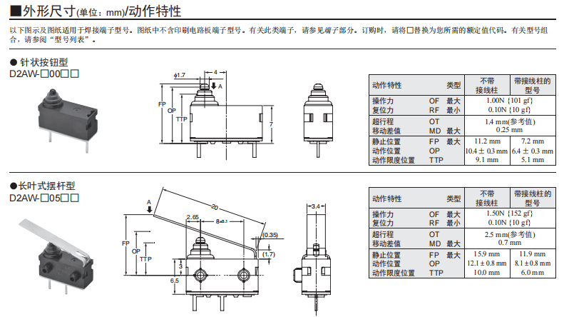 D2SW 密封型超小型基本歐姆龍開(kāi)關(guān)