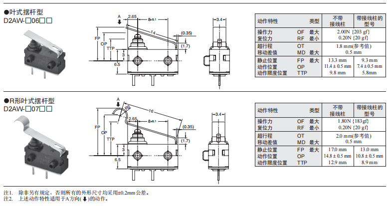 D2AW防水微動(dòng)歐姆龍開(kāi)關(guān)