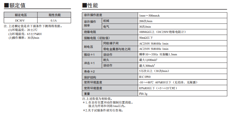采用按鈕動作式的歐姆龍超小型開關(guān) 歐姆龍超小型(高6×寬8×深4.2mm)、輕量(約0.3g)、3mm的長行程。 由于是滑動方式,所以短路、非短路的切換時間可根據(jù)使用用途進(jìn)行選擇。