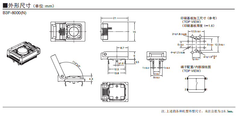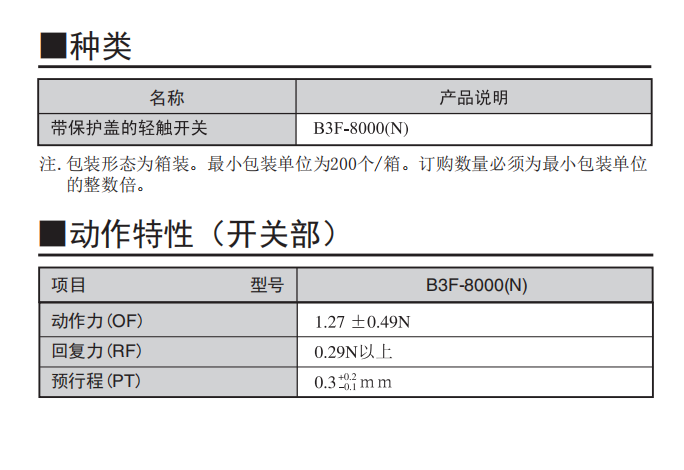 B3F-8000(N) 輕觸式開關(guān)(帶保護(hù)蓋)