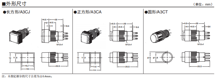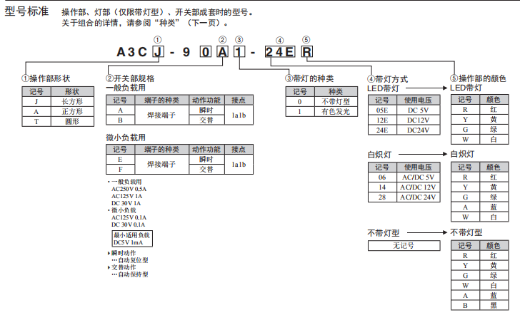 A3C系列按鈕歐姆龍開(kāi)關(guān)(帶燈、不帶燈)(圓型φ12)