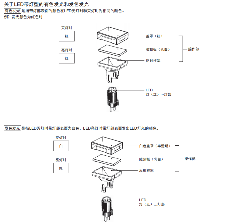 長20mm、 圓型f12系列 ●與按鈕開關(guān)A3C系列是同一類型。 ●高亮度的均一表面發(fā)光。 ●圓形便于開孔。