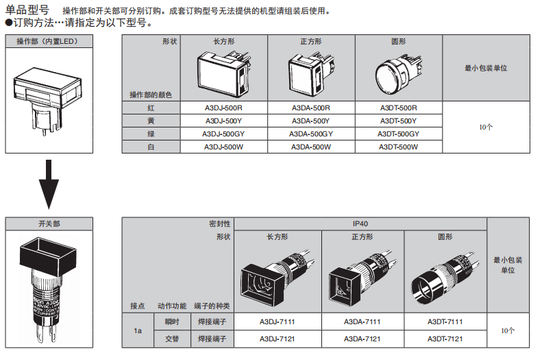 A16□-P 按鈕歐姆龍開(kāi)關(guān)(分離式)(帶燈·不帶燈)(φ16)