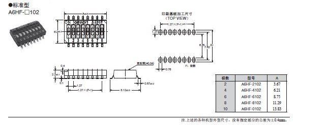 A6HF-□102(-P)滑動(dòng)型DIP開(kāi)關(guān)