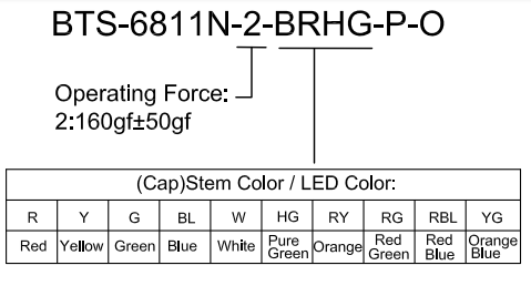 帶燈輕觸開關(guān)BTS-6811N-2-BRHG-P-O