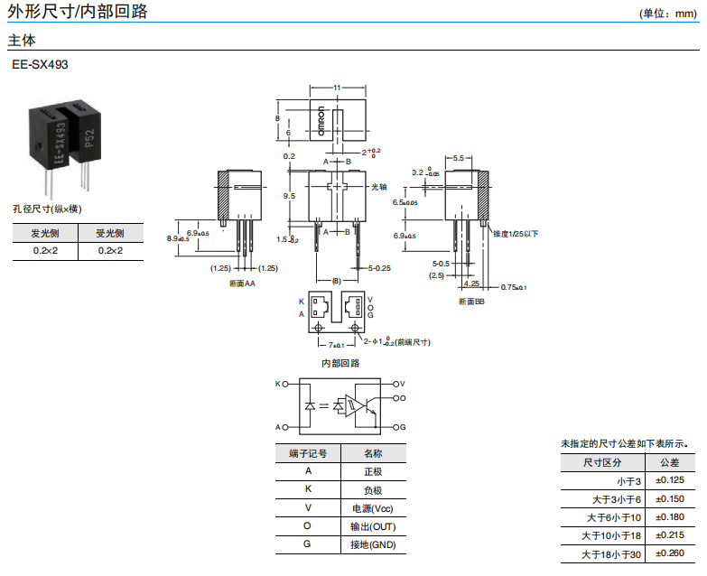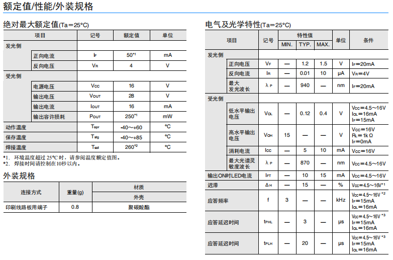 橫向安裝凹槽端子型(槽寬:2mm) 橫向孔徑 印刷線路板用端子 適用電源電壓為 DC4.5~16V 光電IC輸出(入光時(shí)ON) 可直接連接 C-MOS