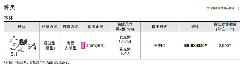 歐姆龍超小型槽型·SMD型(槽寬:2mm) ? 印刷電路板表面封裝型 ? 高分辨率(狹縫寬:0.3mm)