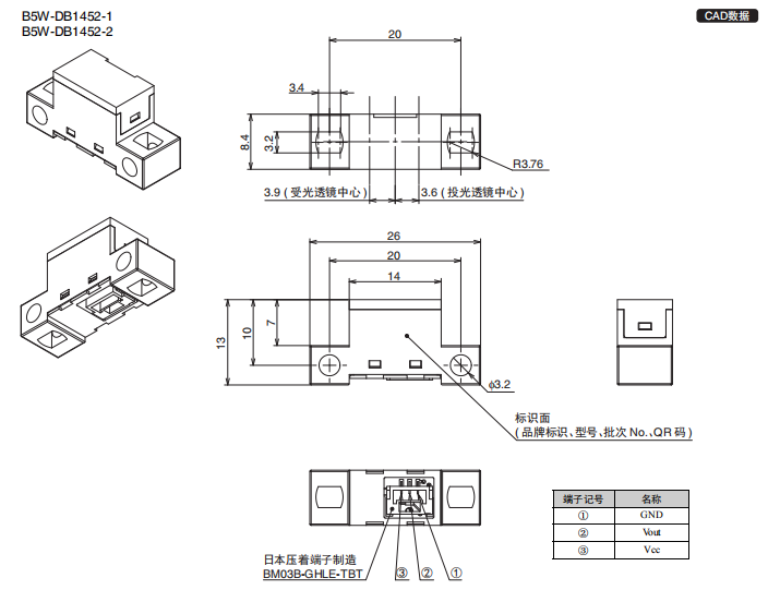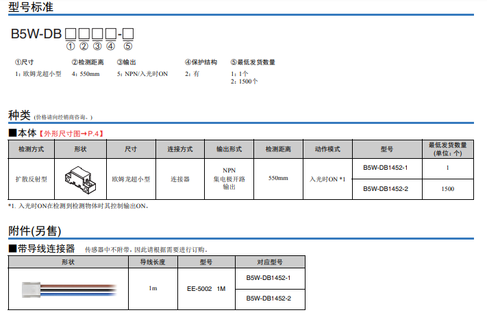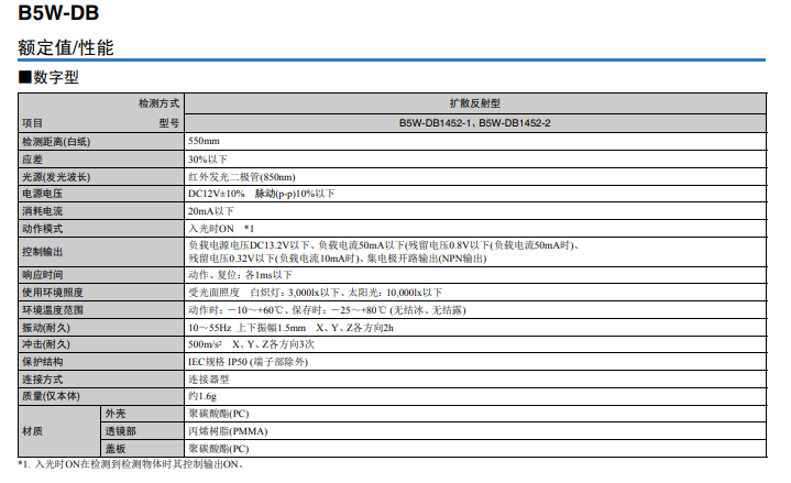 黑色、透明物體反射型傳感器B5W-LB1112-1