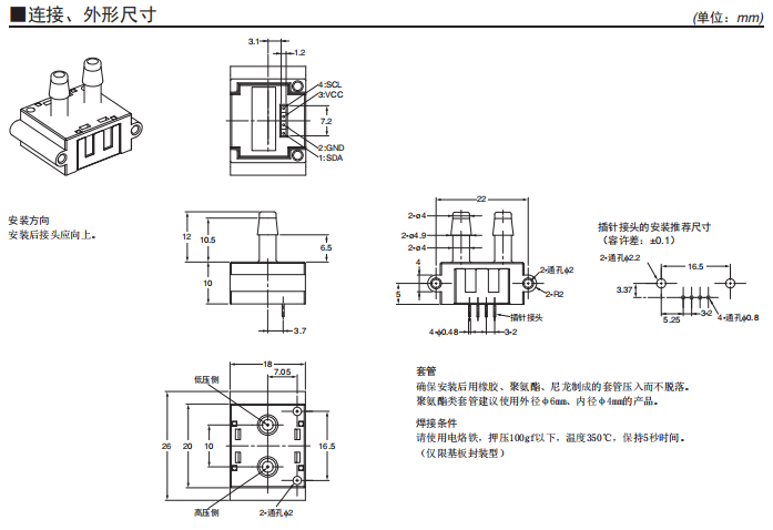 測量范圍:±500Pa 小型、高精度、耐環(huán)境性能卓越的差壓傳感器 ±3%RD的高精度。 具備直線補償、溫度補償功能。 數(shù)字輸出(I2C通信)。 高流量阻抗減少旁路配置的影響