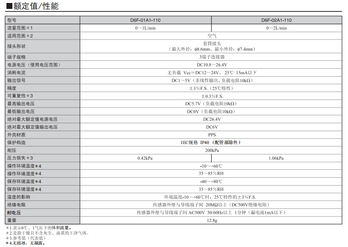D6F-N2/-L2 高精度流量歐姆龍傳感器